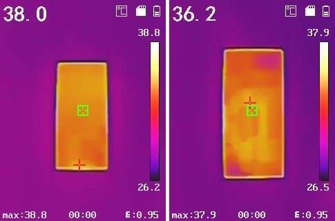 温度方面,红魔10S Pro+在经过30分钟《王者荣耀》测试后,机身正面最高温38.8℃,背面最高温37.9℃,握在手上基本没有温热感,表现出色。