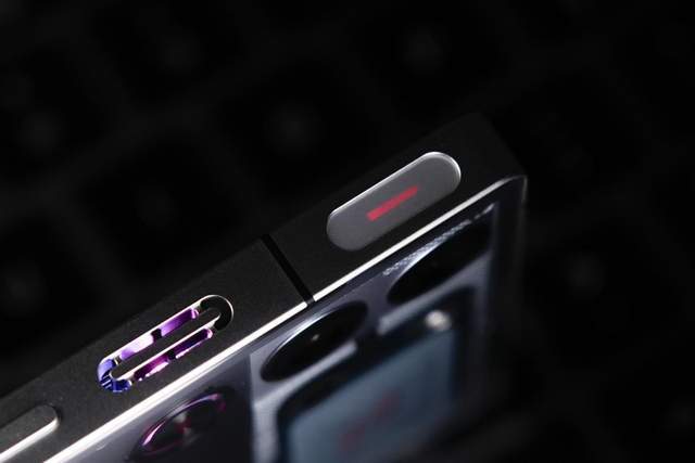 红魔10S Pro+采用金属材质的磨砂直角中框,按键被集中安置在机身右侧,按键反馈力度适中,公差控制良好,手感清脆,且没有虚位晃动。
