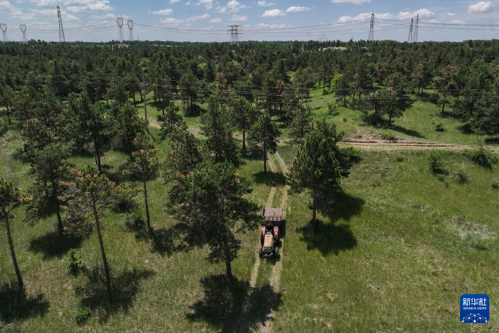 6月4日,李东魁驾驶拖拉机前往林地(无人机照片)。