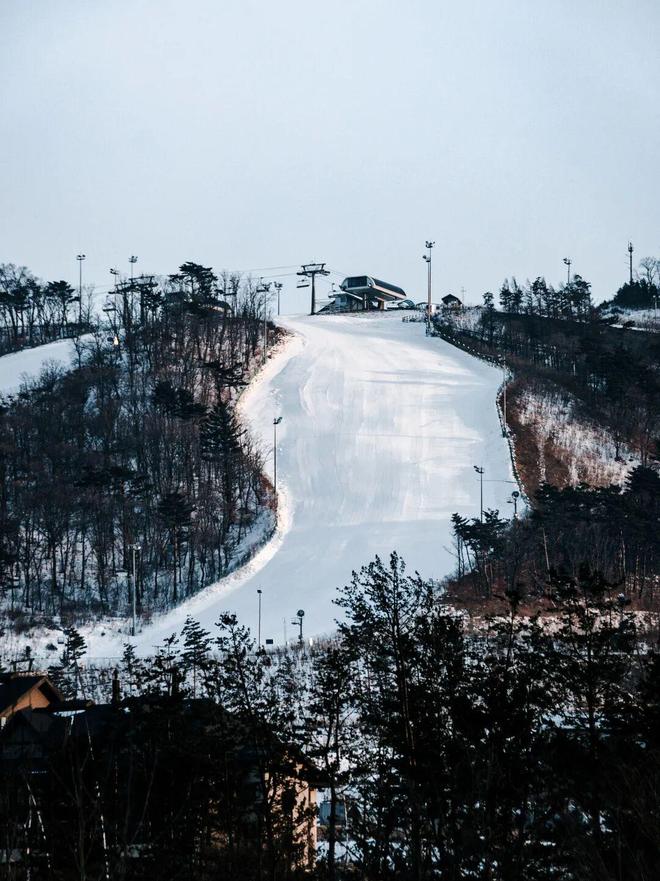 在众多雪场之中,位于平昌的龙平度假村滑雪场(YongPyong Resort),是最具代表性的一座。开业于1975年的龙平,被视为韩国现代滑雪文化的起点,也是目前韩国规模最大的滑雪度假区。28条难度各异的雪道分布在山体之上,从初学者到进阶滑雪者都能找到合适的路线。作为韩国元老级别的场地,这里还曾是平昌冬奥会和高山滑雪世界杯分站赛的举办地。