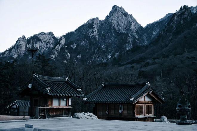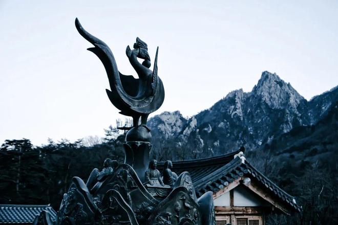 从束草市出发,搭乘7号或7-1号巴士,约半小时就能抵达雪岳山国立公园的售票处。沿林间步行不到一公里,便来到新兴寺。这座寺庙最早可以追溯至公元7世纪,几经战火与天灾,反复重建后,才以今天的面貌重现。