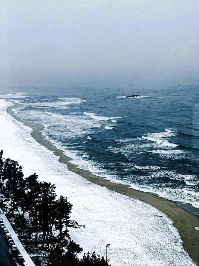 襄阳的海,骨子里是属于速度与浪潮的。SURFYY BEACH作为韩国首座冲浪专用海滩,在盛夏时分无疑是荷尔蒙的竞技场;然而当冬季降临,这片海域反而显影出“世界尽头”般的静谧。好在岸边林立的咖啡馆依旧在场,玻璃窗内的暖意足以抵御东海岸的寒风。